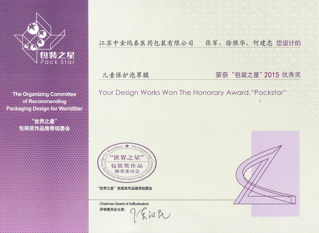 日前,本公司自行研發(fā)的新產(chǎn)品“兒童保護(hù)泡罩膜”榮獲“世界之星包裝獎推薦委員會”頒發(fā)的“包裝之星”優(yōu)秀獎。