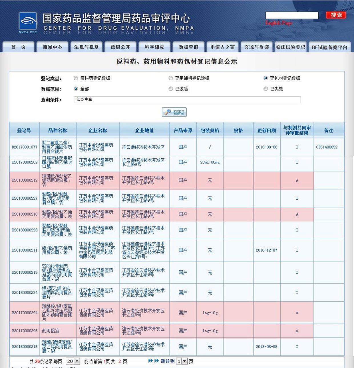 近期,CDE登記平臺對公示的“與制劑共同審評審批結果”一欄進行了更新, 我公司公示的26個產品中,4個產品狀態顯示由I更新為A,意味著這4個產品已通過共同審評,獲準在關聯的新上市制劑中使用,分別是:B20170000293藥用鋁箔、B20170000294聚酰胺//聚氯乙烯冷沖壓成型固體藥用復合硬片、B20180000210聚酯//聚乙烯藥用復合膜袋、B20180000212玻璃紙//聚乙烯藥用復合膜袋,已獲批準的數量在行業內處于領跑地位。