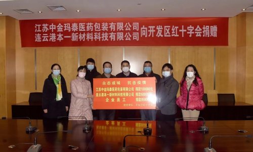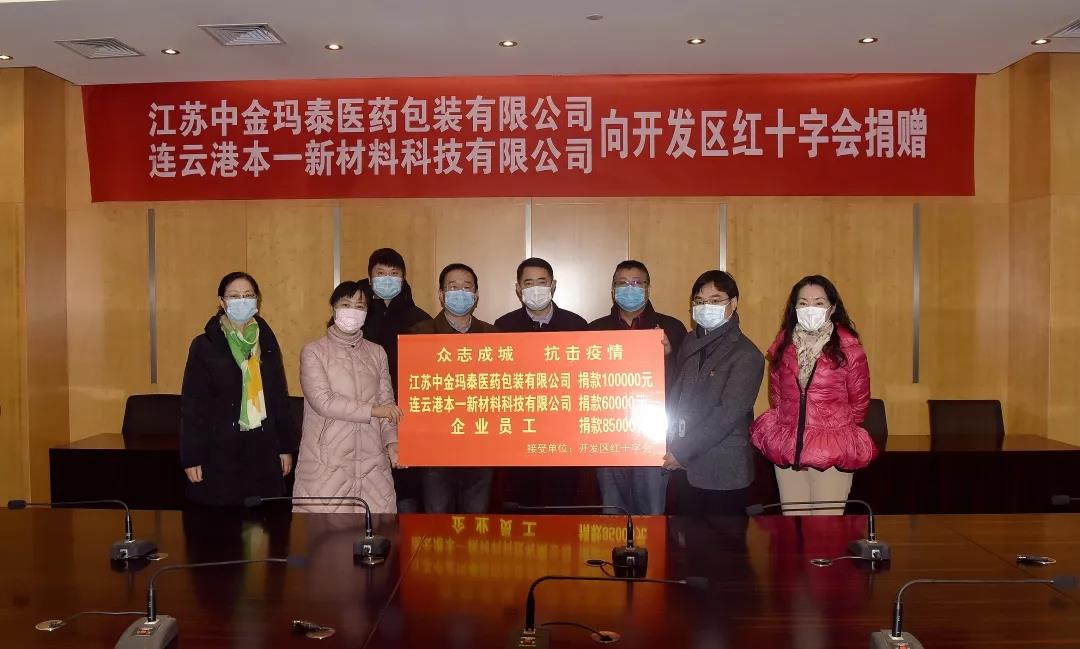 2月14日上午,江蘇中金瑪泰醫(yī)藥包裝有限公司、連云港本一新材料科技有限公司分別向開發(fā)區(qū)紅十字會(huì)捐贈(zèng)愛心款10萬元、6萬元,企業(yè)職工愛心捐款共8.5萬元,支持開發(fā)區(qū)抗擊疫情工作。區(qū)黨工委副書記、管委會(huì)常務(wù)副主任胡傳宏,區(qū)黨工委委員、黨群工作部部長(zhǎng)、總工會(huì)主席萬軍,區(qū)相關(guān)部門負(fù)責(zé)人,江蘇中金瑪泰醫(yī)藥包裝有限公司總經(jīng)理徐根華、連云港本一新材料科技有限公司負(fù)責(zé)人出席捐贈(zèng)儀式。