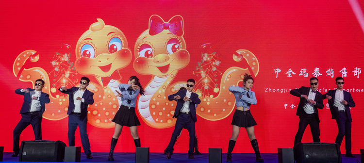 表彰過后,精彩紛呈的年會(huì)節(jié)目表演將現(xiàn)場氣氛推向高潮。員工們自編自演的歌舞、情景劇等節(jié)目,內(nèi)容豐富,形式多樣,充分展現(xiàn)了中金人多才多藝、朝氣蓬勃、昂揚(yáng)向上的精神風(fēng)貌。穿插于節(jié)目之間的一輪輪的幸運(yùn)抽獎(jiǎng)環(huán)節(jié),更是將年會(huì)氣氛推向高潮,不斷抽出的豐厚獎(jiǎng)品也為大家?guī)砹艘馔獾捏@喜和歡樂。